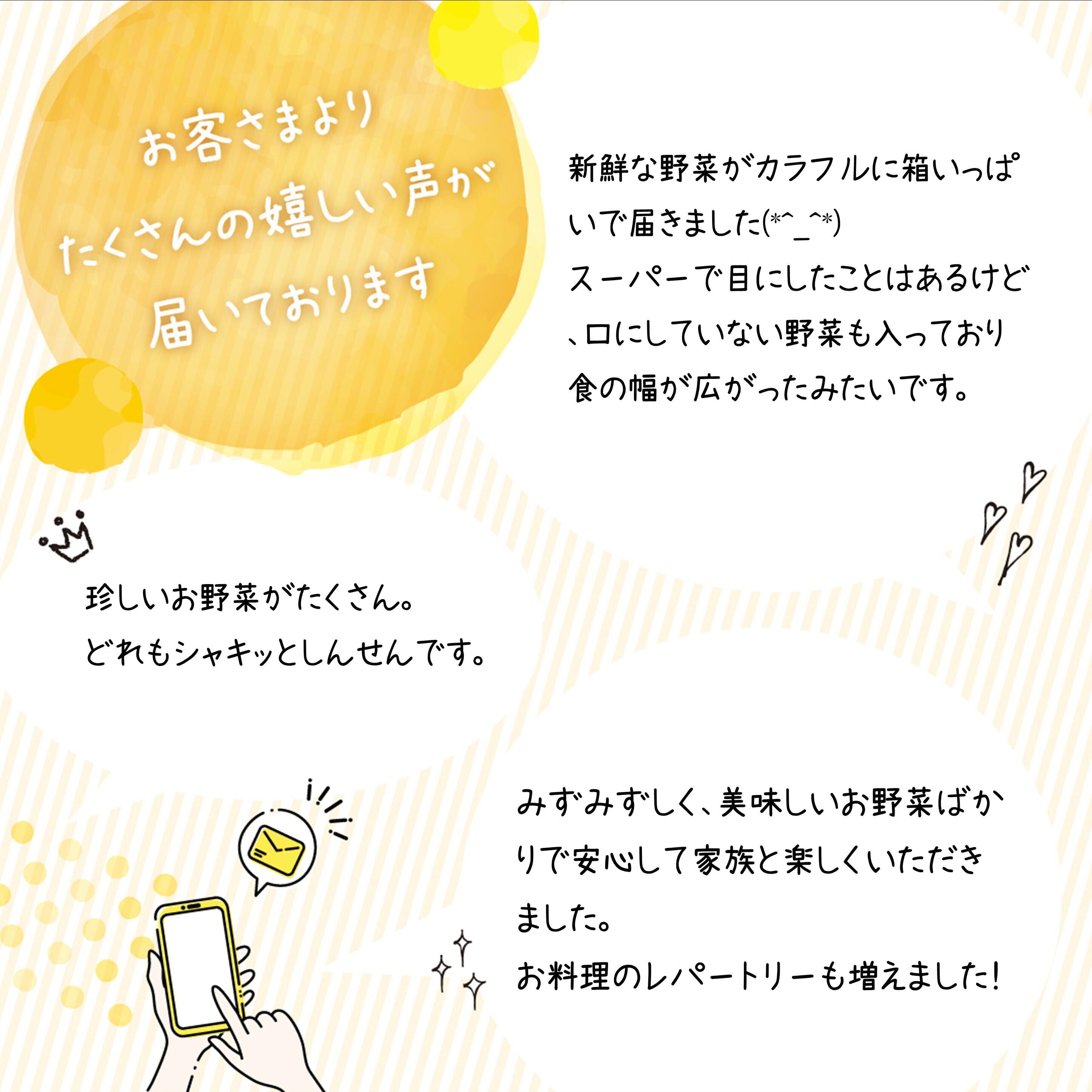 ★野菜を通じて、旬を感じて頂きたいです。スーパーに並ばないような珍しい野菜が入る場合もあります。ぜひネットで調べたりしてどう調理するかチャレンジして頂きたいです。